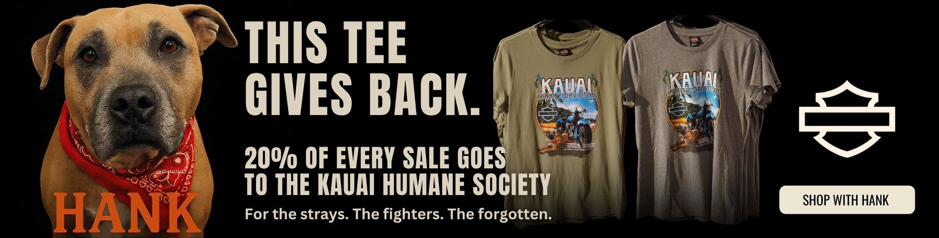 Show your support for Kaua‘i’s four-legged heroes and the Harley riders who never back down. Available now in-store at Kaua‘i Harley-Davidson, the world’s westernmost Harley-Davidson dealership.